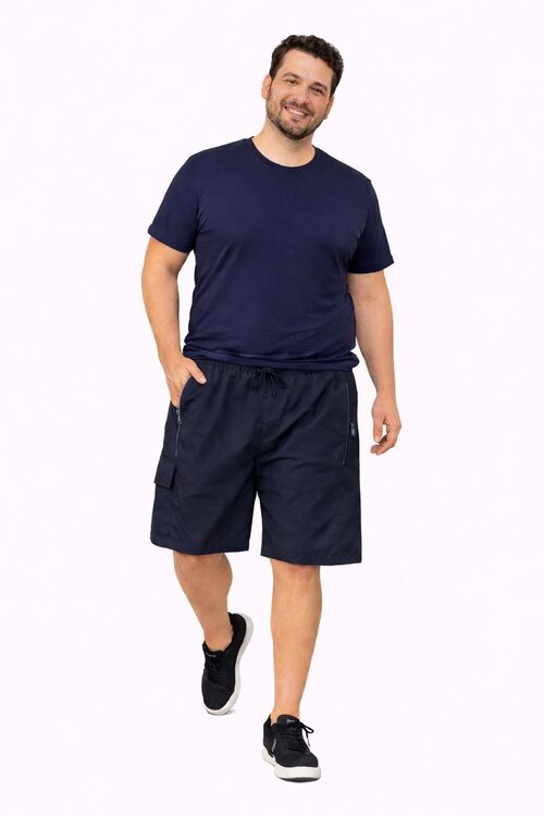 Bermuda Plus Size Cargo Tactel Marinho Rag Pickers – 4 Bolsos com Zíper