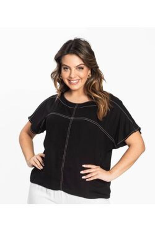 Blusa Cropped Plus Size Lisa Com Pespontes Branco - Rovitex