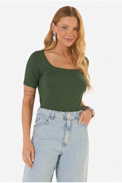 Blusa Feminina Canelada Rovitex Manga Curta em Viscose com Elastano Verde