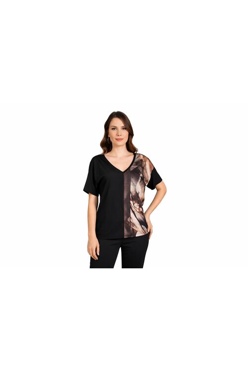 Blusa Feminina Plus Size Estampada Preto Miravest Manga Curta