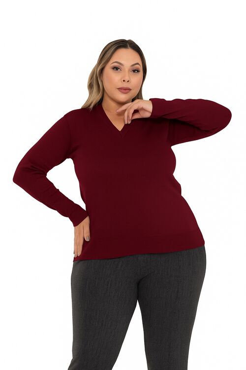 Blusa Malha com Elastano Plus Size Vinho Jaú
