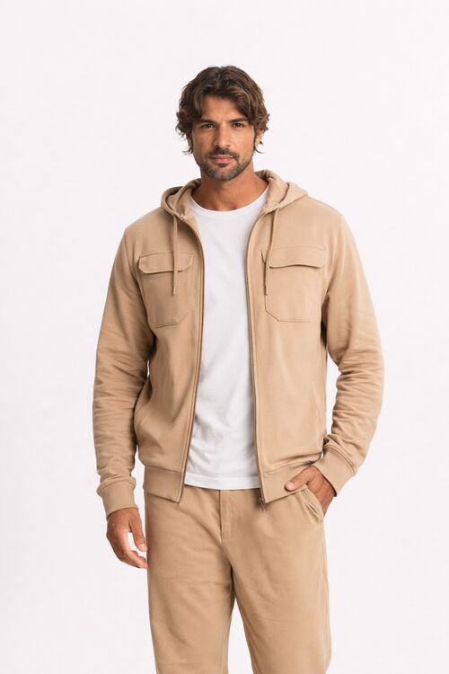 Home / Masculino / Moletons e Blusões / Blusão Masculino Moletom com Capuz e Zíper Cargo Woods Bege