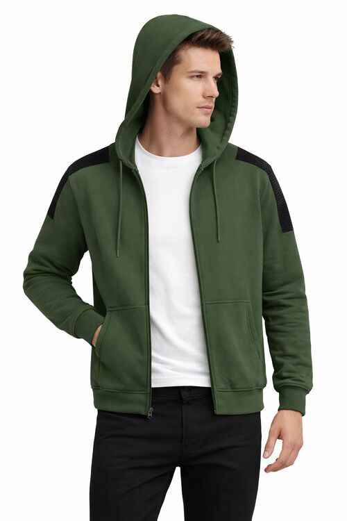 Blusão Masculino Moletom com Capuz Verde com Zíper Detalhe Preto