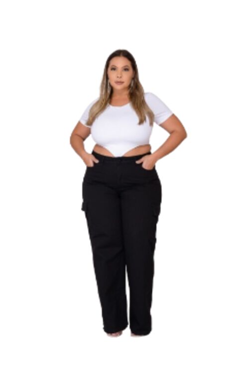 Calça Cargo Plus Size Preta Shyros em Brim 100% Algodão com 6 Bolsos