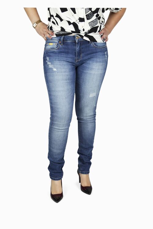 Calça Jeans Cigarrete Feminina La Rossi Azul com Elastano Lavagem Puída
