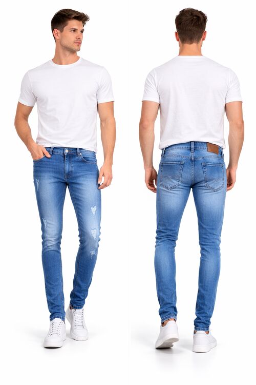 Calça jeans skinny com lavagem moderna e caimento ajustado que valoriza o corpo sem limitar os movimentos.