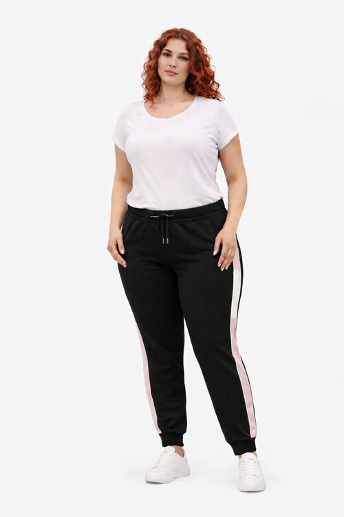 Calça Moletom Plus Size Feminina Preto Blue Tech com Faixa Lateral