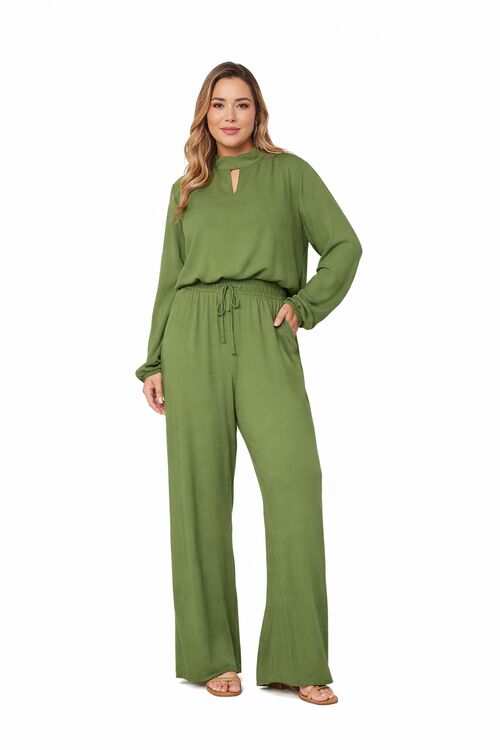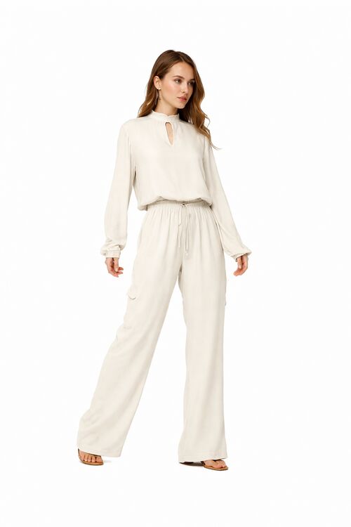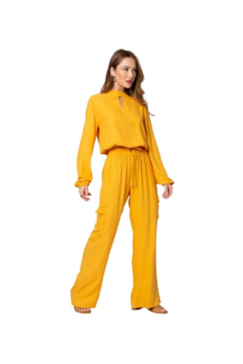 Calça Pantalona Cargo Feminina Endless em Viscose com Cintura Elástica