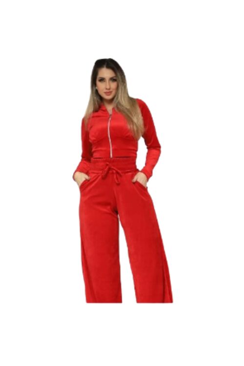 Calça Pantalona Feminina em Plush Vermelho FitWell com Cintura Elástica