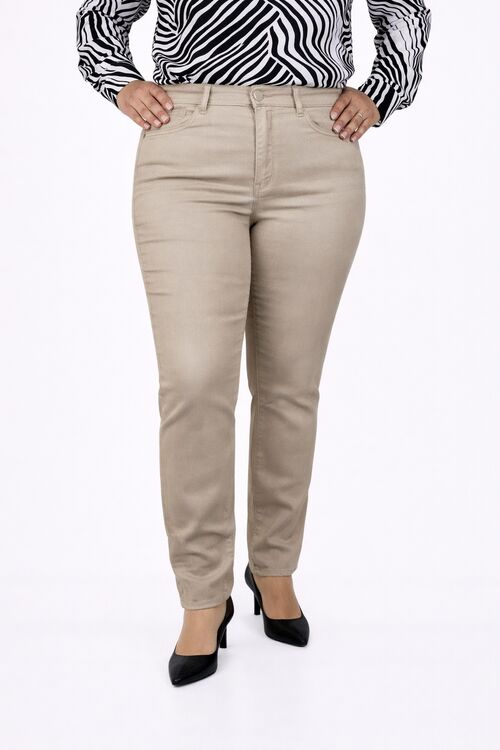 Calça Skinny Feminina em Sarja Bege Muito Mais com Elastano
