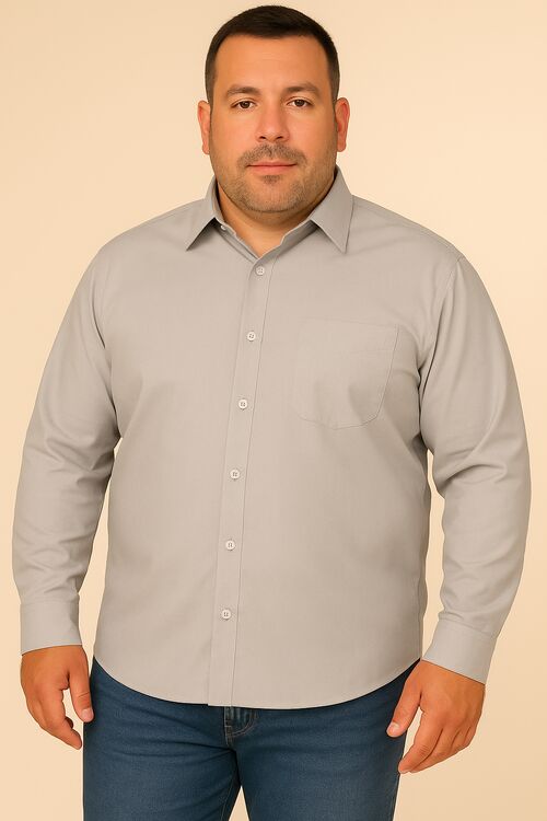 Camisa deTricoline Plus Size Ml Cinza Caw