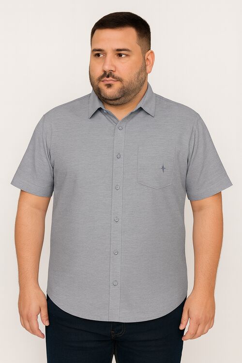 Camisa Fio a Fio Tradicional Mc Com Bolso Cinza Caw