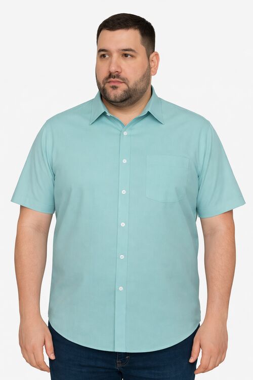 Camisa Masculina Plus Size Manga Curta Tricoline Azul Caw