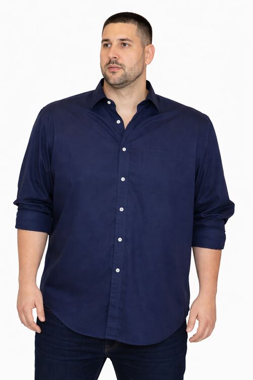 Camisa Masculina Plus Size Manga Longa Algodão Fio 50 Marinho Caw