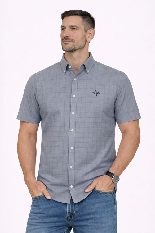 Home / Masculino / Camisa Masculina Tricoline Quadriculada Cinza Manga Curta Regular Caw