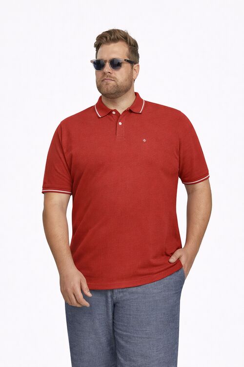 Camisa polo Plus Size em malha Piquet de algodão e poliéster, com toque macio, boa estrutura e caimento confortável para o dia a dia.