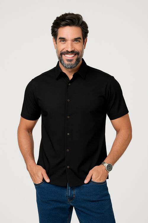 Camisa Spandex Slim Mc Preto Caw