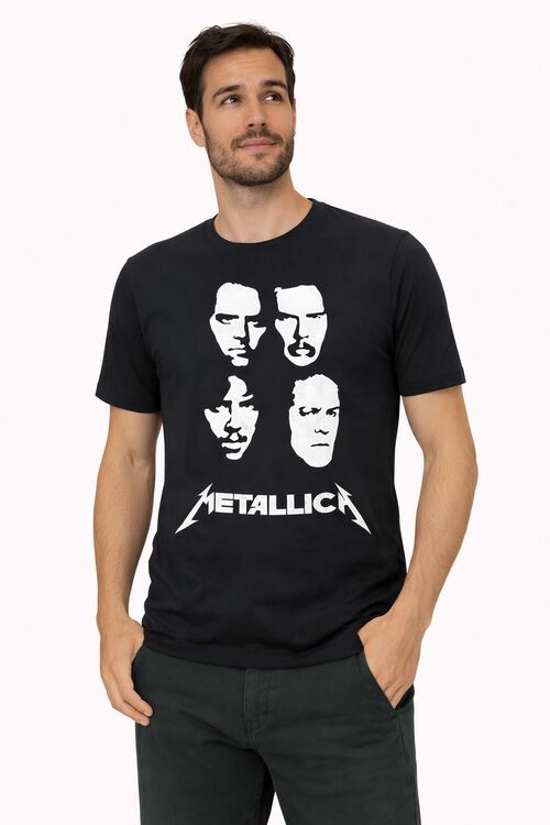 Modelo slim fit, de gola careca, com estampa Rock Metallica que traz visual marcante e atemporal.
