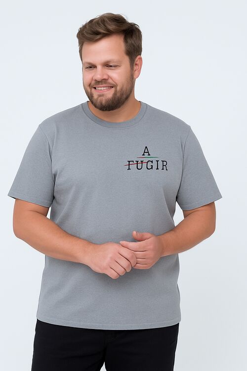 Camiseta Plus Size Fugir ou Agir Cinza
