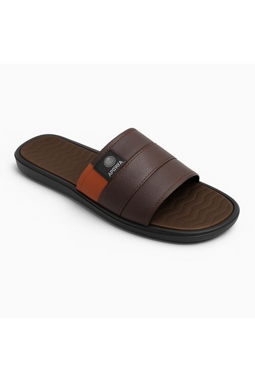 “Slide Apuana Preto/Café — o chinelo que o homem moderno usa sem pensar duas vezes.