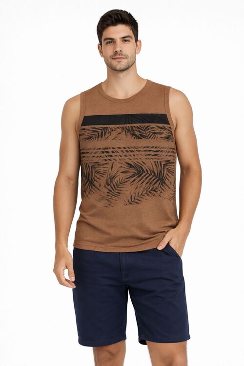 Regata Masculina Rovitex Marrom – Algodão e Poliéster com Estampa Frontal