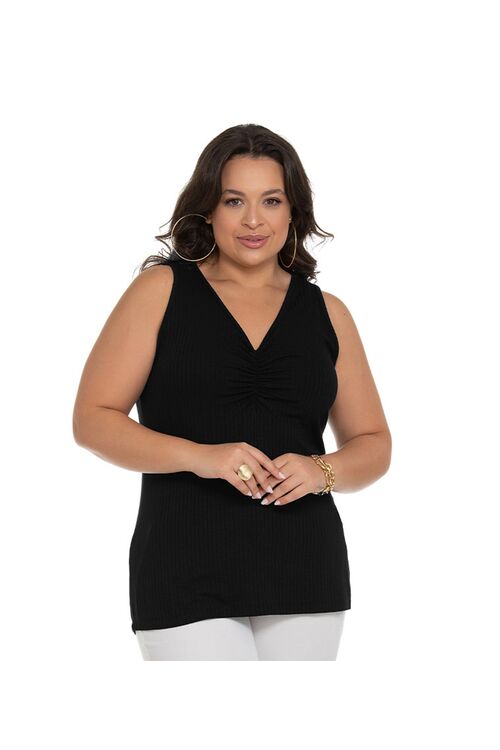 Regata Plus Size Secret Glam Canelada com Franzido no Decote – Viscose com Elastano