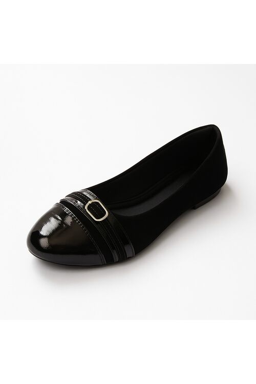 Sapatilha Feminina Verniz Preto Nobuk Bico Redondo