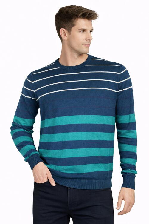 Suéter Masculino Tricot Listrado Gola Careca Conforto Casual
