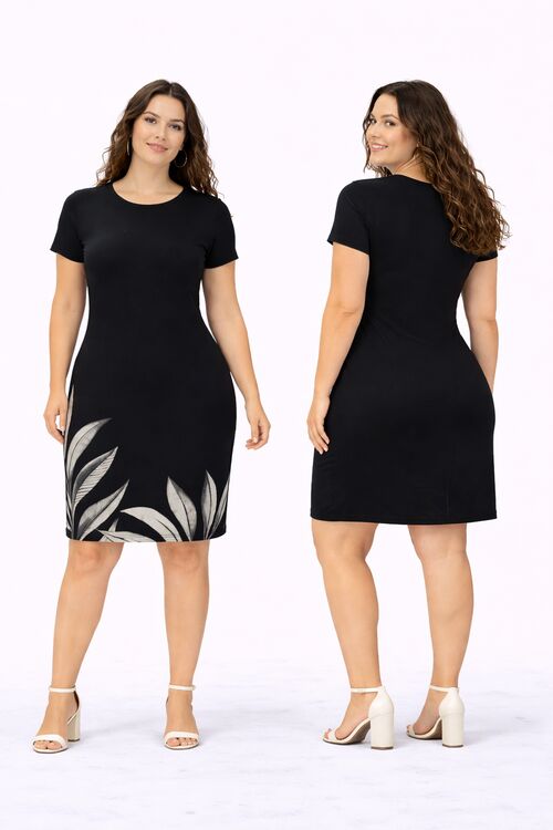 Vestido Feminino Rovitex em Malha Fria Preto com Estampa Moderna