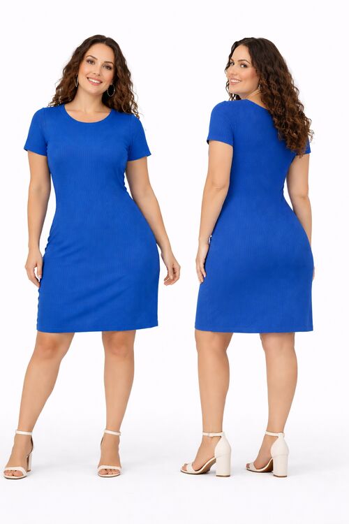 Home / Plus Size / Vestido Plus Size Canelado Reto Azul Viscose com Elastano Secret