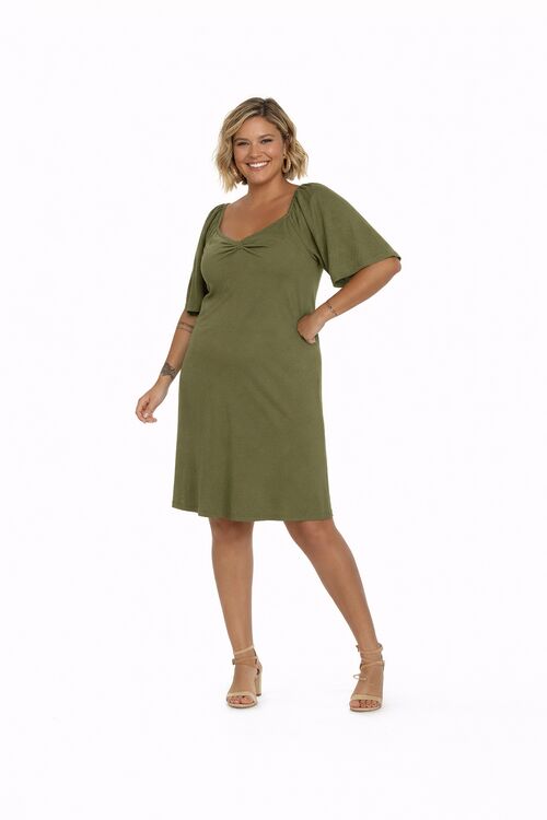 Vestido Plus Size Ribana Canelado Verde Secret com Lurex